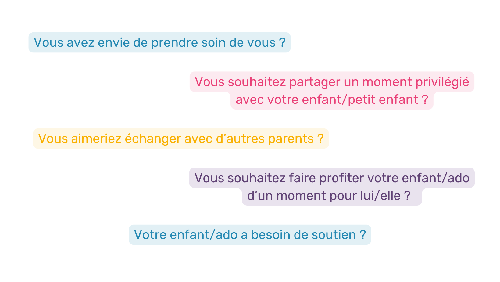 - Les parents, les futurs parents, et tous les accompagnant.e.s de l’enfant : grands-parents, proches, tuteurs/tutrices, etc.